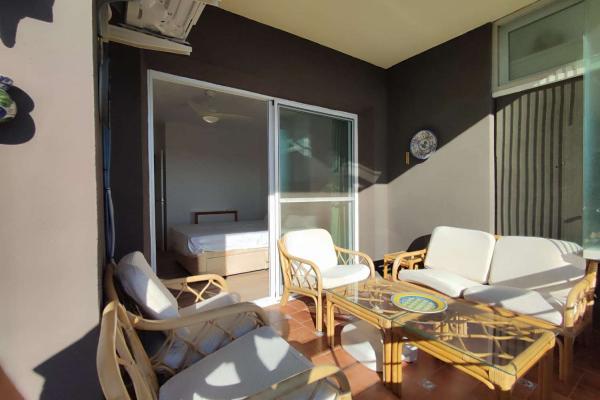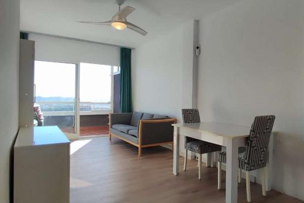 Apartamento en muy buenas condiciones, salón con cocina americana, amplio dormitorio con armario empotrado y baño independiente. Gran terraza de 14 m2, orientación suroeste con unas vistas preciosas, tiene aire acondicionado, zona de parking comunitaria, incluido el agua en la cuota de comunidad (52€/mes)